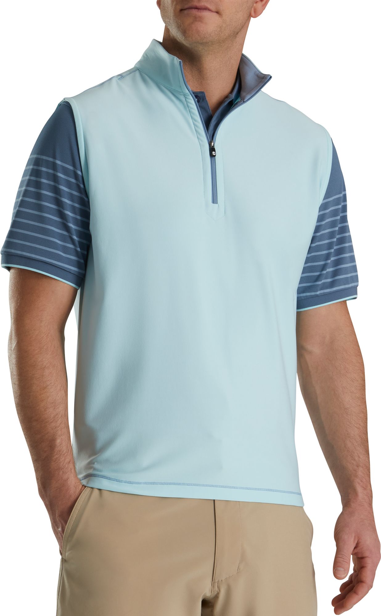 Rev up your next golf outing or outdoor adventure with our Mens ¼-Zip Fleece Pullover. FootJoy Stretch Woven Golf Vest Knit Accents - Navy. Nikes Dri-Fit Victory Heather Top offers the look of a sweater and features ½ zip closure with a notch at the collar to prevent.